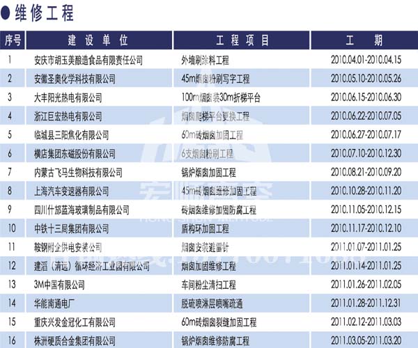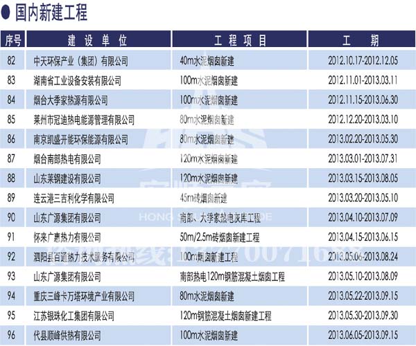 - 宏順建設核心技術 宏順建設專業承接各種煙囪新建,磚煙囪新建,煙囪防腐,煙囪滑膜,煙囪改造,煙囪內壁防腐,煙囪脫硫防腐等工程,有多年的成功經驗...解詳情